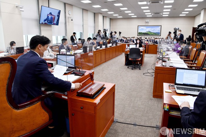 [서울=뉴스핌] 최상수 기자 = 4일 서울 여의도 국회에서 환경노동위원회 전체회의가 김영진 위원장 직무대행 주재로 열리고 있다. (공동취재사진) 2022.08.04 photo@newspim.com