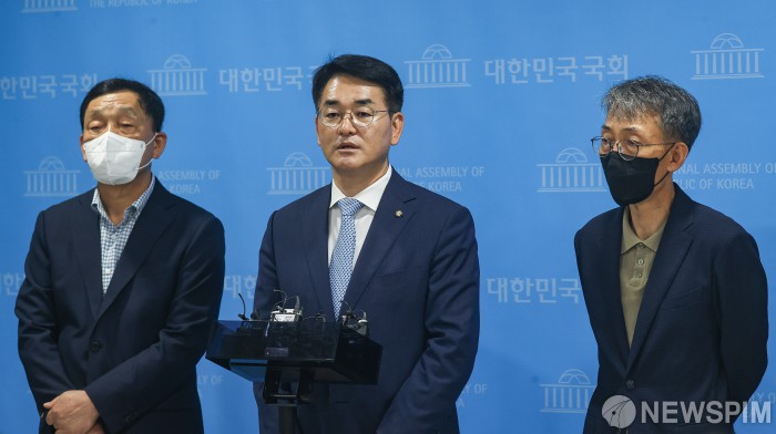 [서울=뉴스핌] 최상수 기자 = 박용진 더불어민주당 대표 후보가 8일 서울 여의도 국회 소통관에서 사당화 방지 관련 기자회견을 마친 뒤 취재진의 질문에 답변하고 있다. 2022.08.08 kilroy023@newspim.com