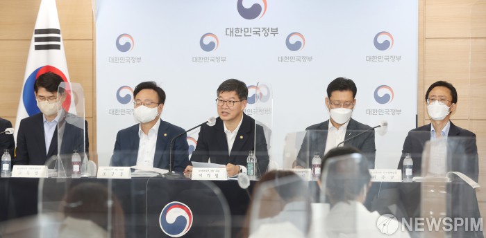 [서울=뉴스핌] 김민지 기자 = 조규홍 보건복지부 1차관과 이기일 2차관이 19일 서울 종로구 정부서울청사에서 새정부 업무보고 사전 브리핑을 하고 있다. 2022.08.19 kimkim@newspim.com