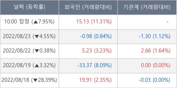[표] 외국인ㆍ기관 순매매량 (단위 만주)