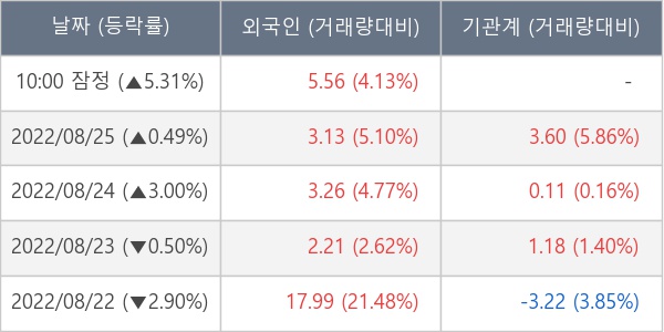 [장중수급포착] 한국비엔씨, 외국인 10일 연속 순매수행진... 주가 +5.31%