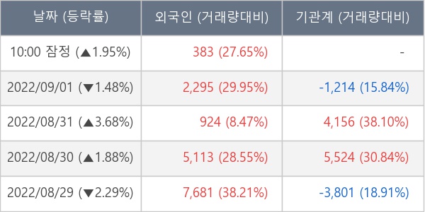 [표] 외국인ㆍ기관 순매매량 (단위 주)