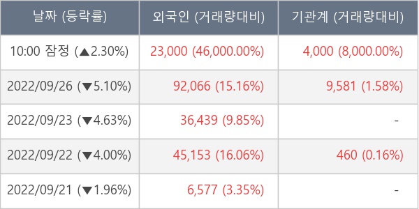 [표] 외국인ㆍ기관 순매매량 (단위 주)