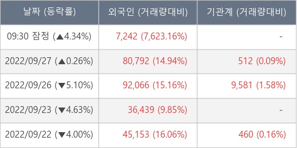 [표] 외국인ㆍ기관 순매매량 (단위 주)