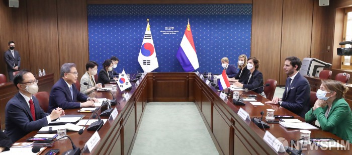 [서울=뉴스핌] 김학선 기자 = 박진 외교부 장관과 웝크 훅스트라 네덜란드 외교장관이 28일 서울 종로구 외교부 청사에서 한-네덜란드 외교장관회담을 하고 있다. 2022.09.28 yooksa@newspim.com