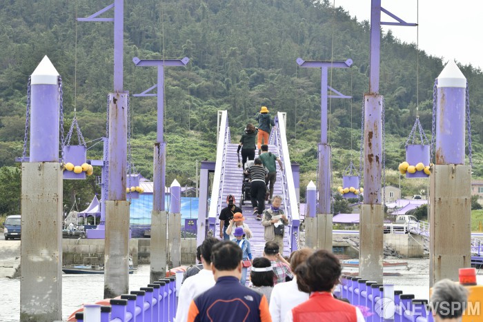 [신안=뉴스핌] 전경훈 기자 = 개천절 연휴 둘째 날인 2일 오후 전남 신안군 퍼플섬으로 유명한 반월·박지도에서 '퍼플섬 아스타꽃 축제'가 열리고 있는 가운데 관광객들로 북적이고 있다. '보라보라 퍼플섬'이란 주제로 열리는 이 축제는 오는 10일까지 열린다. 2022.10.02 kh10890@newspim.com