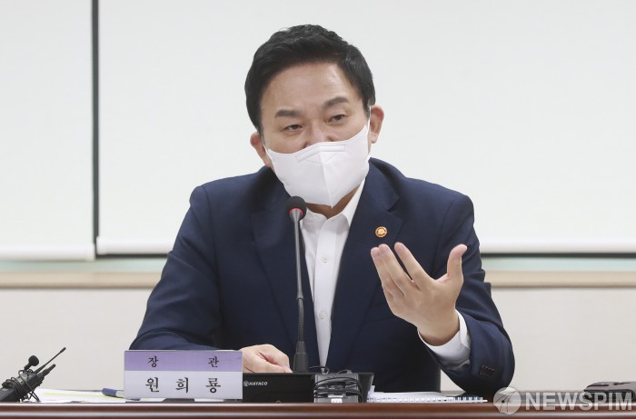 [서울=뉴스핌] 이형석 기자 = 원희룡 국토교통부 장관이 4일 오후 서울 여의도 HUG 서부주택도시금융센터에서 열린 관리비 투명화 및 사각지대 해소를 위한 간담회에서 모두발언을 하고 있다. 2022.10.04 leehs@newspim.com
