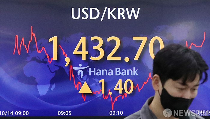 [서울=뉴스핌] 정일구 기자 = 14일 코스피 지수가 전 거래일보다 37.79포인트(1.75%) 상승한 2200.66에 출발했다. 코스닥 지수는 전 거래일 대비 13.58포인트(2.08%) 오른 665.17에 시작했다. 원·달러 환율은 전 거래일보다 0.2원 오른 1431.5원에 장을 열었다. 이날 오전 서울 중구 하나은행 딜링룸에서 딜러들이 업무를 보고 있다. 2022.10.14 mironj19@newspim.com