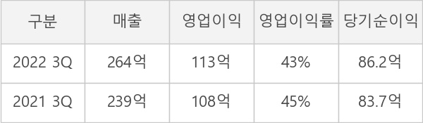 ◆ 3Q, 영업이익 113억원 전년동기 대비 4.1% 증가... 매출액 +11%