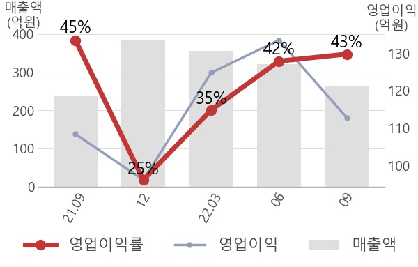 같은 기간, 매출은 119억(31%) 감소하였고, 영업이익은 16.6억(17%) 증가하였기 때문에 매출 감소과 영업이익 증가가 맞물려 지속적인 영업이익률 상승이 나타났다.