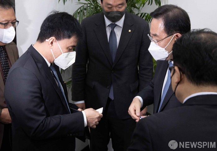 [서울=뉴스핌] 윤창빈 기자 = 주호영 국민의힘 원내대표가 17일 오후 서울 여의도 국회 운영위원장 접견실에서 아흐맛 딤야티 나타쿠수마 인도네시아 하원 총무위원회 대표단장과 인사를 하고 있다. 2022.11.17 pangbin@newspim.com