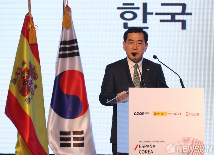 [서울=뉴스핌] 황준선 기자 = 이창양 산업통상자원부 장관이 18일 오전 서울 종로구 포시즌스 호텔에서 열린 한-스페인 비지니스 포럼에서 축사를 하고 있다. 2022.11.18 hwang@newspim.com