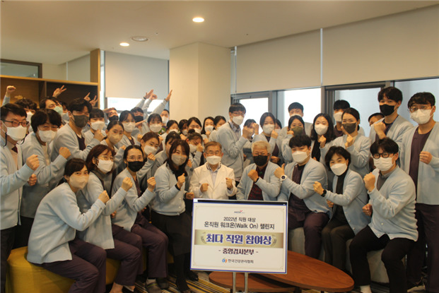 [대전=뉴스핌] 오영균 기자 = 한국건강관리협회는 직원 체력 증진 및 스트레스 완화를 위해 지난 10월 20일부터 지난달 19일까지 임직원을 대상으로 '온직원, 워크온(Walk On)' 챌린지를 실시했다.