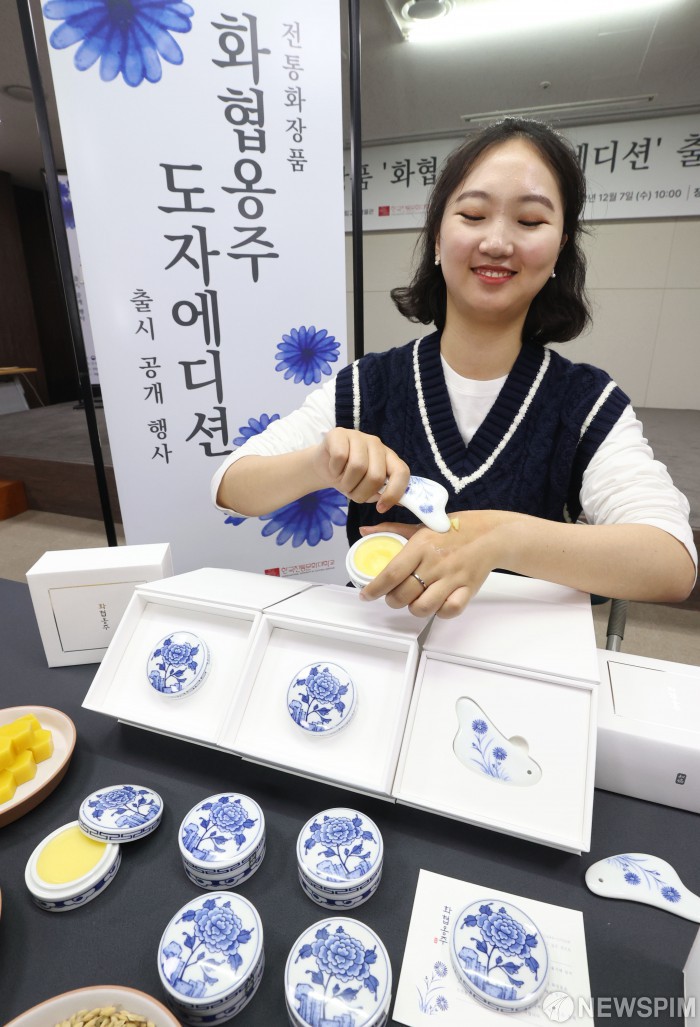 [서울=뉴스핌] 김학선 기자 = 7일 서울 종로구 국립고궁박물관에서 조선왕실 전통화장품 '화협옹주 도자에디션'이 공개되고 있다. '화협옹주 도자에디션'은 영조의 딸이자 사도세자 친누나인 화협옹주묘에서 나온 93점의 유물을 분석해 현대적으로 재해석한 화장품이다. 2022.12.07 yooksa@newspim.com
