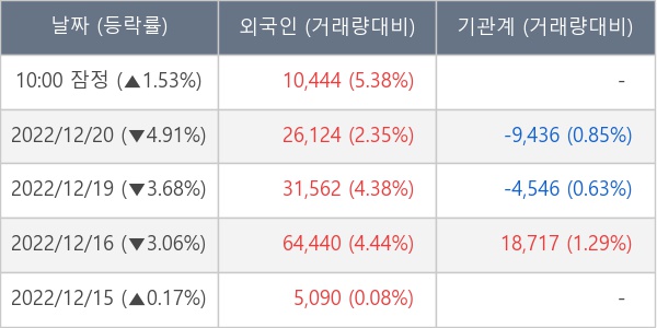 [표] 외국인ㆍ기관 순매매량 (단위 주)