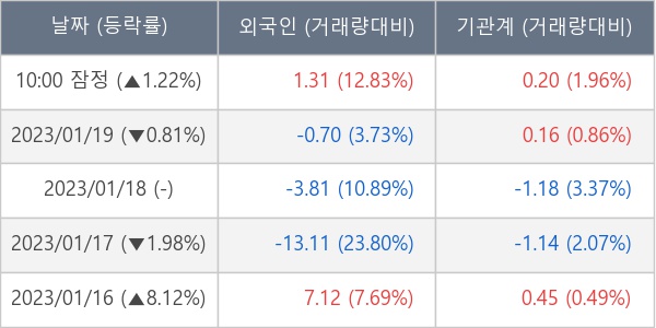 [표] 외국인ㆍ기관 순매매량 (단위 만주)