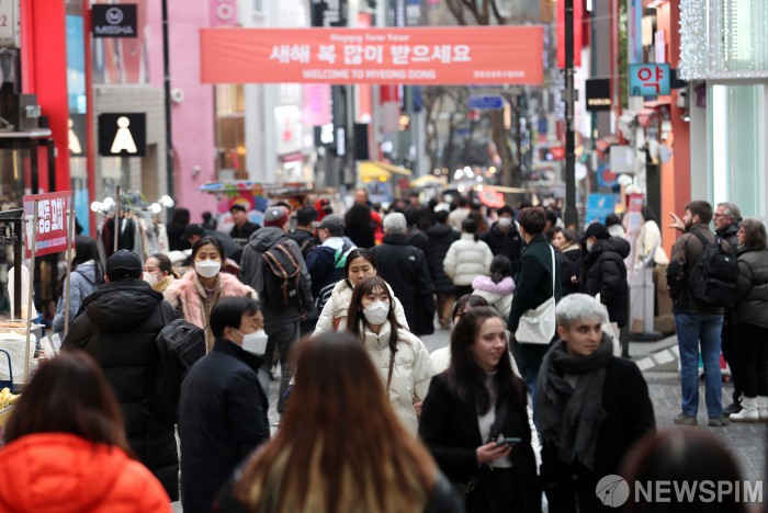 [서울=뉴스핌] 정일구 기자 = 정부가 중국발 입국자에 대한 단기 비자 발급을 재개한 가운데 13일 오후 서울 중구 명동거리가 외국인 관광객들로 붐비고 있다. 2023.02.13 mironj19@newspim.com