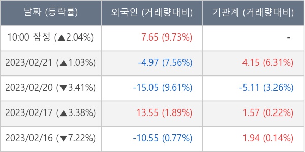 [표] 외국인ㆍ기관 순매매량 (단위 만주)
