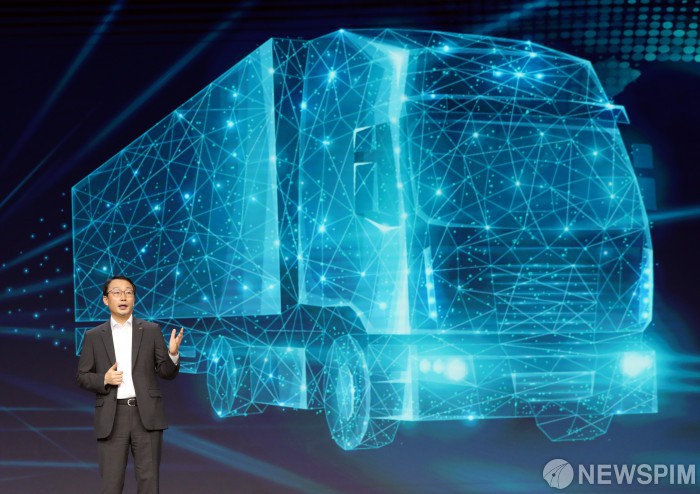 [바르셀로나=뉴스핌] 사진공동취재단 = 28일 오후(현지시간) 구현모 KT 대표가 스페인 바르셀로나 피라 그란 비아 전시장에서 열린 세계 최대 이동통신 전시회 '모바일 월드 콩그레스'(MWC 2023)에서 '협업(Co-Creation)을 위한 시간인가?'를 주제로 기조연설을 하고 있다. 2023.02.28 photo@newspim.com