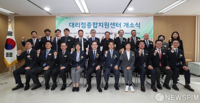 [서울=뉴스핌] 김보나 인턴기자 = 10일 오후 서울 중구 공정거래조정원에서 열린 대리점종합 지원센터 개소식에서 내빈들이 기념촬영을 하고 있다. 2023.03.10 anob24@newspim.com