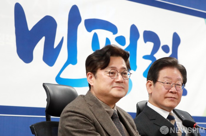 [서울=뉴스핌] 이형석 기자 = 이재명 더불어민주당 대표가 21일 오후 서울 여의도 국회 의원회관에서 열린 민주평화국민연대 간담회에서 홍익표 의원과 자리하고 있다. 2023.03.21 leehs@newspim.com