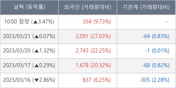 [표] 외국인ㆍ기관 순매매량 (단위 주)