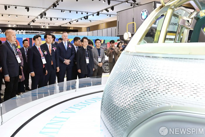 [서울=뉴스핌] 장영진 산업통상자원부 1차관이 31일 오전 경기도 일산 킨텍스 제1전시장에서 ‘지속가능하고 지능화된 이동혁명’이라는 주제로 열린 2023 서울모빌리티쇼 개막식에서 참석자들과 주요 전시관을 둘러보고 있다.이날 개막식에는 윤관석 국회 산업통상자원중소벤처기업위원회 위원장, 이원욱, 이용우 국회의원, 강남훈 자동차산업협회장, 정윤정 수입자동차협회 부회장을 비롯한 현대차, 로노코리아, 벤츠, BMW, 테슬라 등 전세계 10개국 160여개 기업이 참가했다.[사진=산업통상자원부] 2023.03.31 photo@newspim.com
