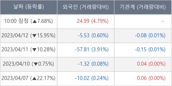 [표] 외국인ㆍ기관 순매매량 (단위 만주)