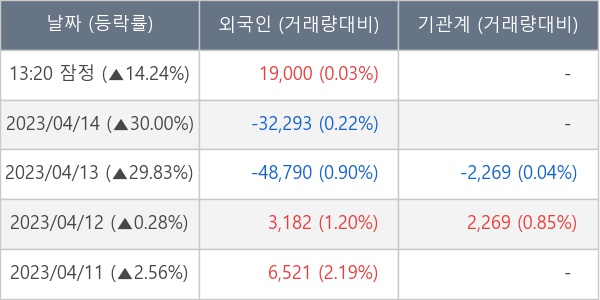 [표] 외국인ㆍ기관 순매매량 (단위 주)