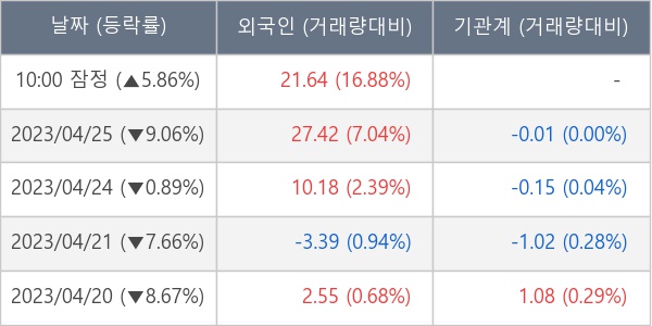 [표] 외국인ㆍ기관 순매매량 (단위 만주)