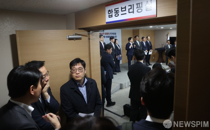 [서울=뉴스핌] 김학선 기자 = 원희룡 국토교통부 장관이 27일 정부서울청사에서 열린 전세사기 피해자 지원방안 합동브리핑에서 질문에 답하고 있다. 2023.04.27 yooksa@newspim.com