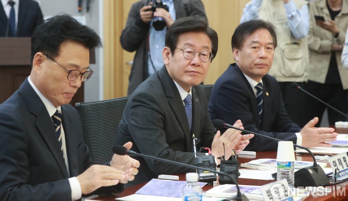 [서울=뉴스핌] 이형석 기자 = 이재명 더불어민주당 대표가 9일 오후 서울 여의도 국회 의원회관에서 열린 윤석열정부 1년 평가 연속토론회에서 박수를 치고 있다. 2023.05.09 leehs@newspim.com