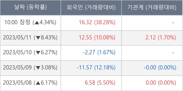 [표] 외국인ㆍ기관 순매매량 (단위 만주)