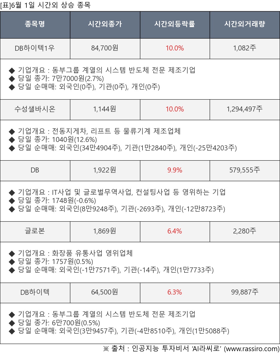 ※ 관련 종목: DB하이텍1우, 수성샐바시온, DB, 글로본, DB하이텍