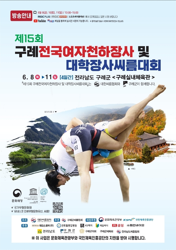 [구례=뉴스핌] 오정근 기자 = 전남 구례군은 오는 8일부터 11일까지 '제15회 구례전국여자천하장사 및 대학장사씨름대회'를 개최한다고 5일 밝혔다.