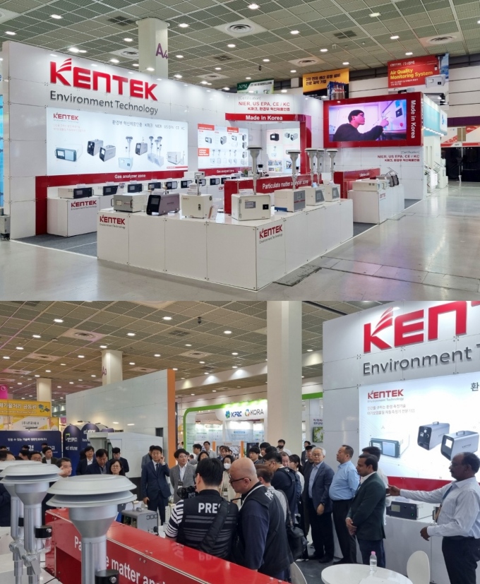 환경계측기기 개발 및 제조 전문기업 켄텍은 이번 전시회를 통해 환경부 형식승인 및 미국 EPA인증 고정형 가스분석기(Rack type gas analyzer) MEZUS 시리즈, 환경부 혁신제품 인증 미세먼지 측정기(Particulate matter measurement analyzer)를 선보였다.