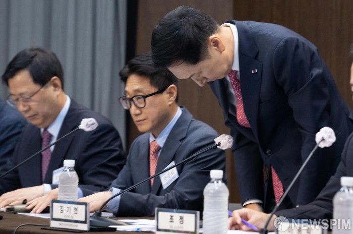 [서울=뉴스핌] 윤창빈 기자 = 김기현 국민의힘 대표가 21일 오전 서울 중구 은행회관에서 한국신문방송편집인협회 주최로 열린 김기현 당대표 초청 편집인 토론회에서 인사를 하고 있다. 2023.06.21 pangbin@newspim.com