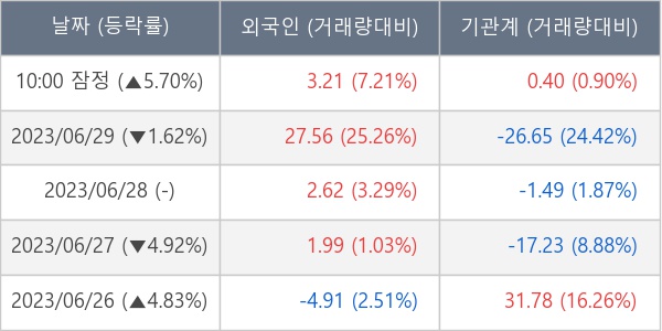 ※ 사모펀드 등 일부 기관의 순매매량은 표시되지 않음
