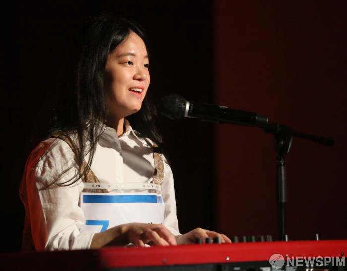 [수원=뉴스핌] 이호형 기자 = 7일 오후 수원 경기문화재단 다산홀에서 열린 국내 최대 유튜브 오디션 '싱어 송 라이터 오디션-음악의 탄생' 네번째 예선 경기지역 대회에서 참가번호 7번 그계절(조영은)이 ‘오늘 하루’ 곡명으로 경연을 펼치고 있다. 종합통신사 뉴스핌이 주최하고 감 엔터테인먼트에서 주관하는 '싱어 송 라이터 오디션-음악의 탄생'은 유튜브 안다(ANDA)TV를 통해 공개된다. 2023.07.07. leemario@newspim.com