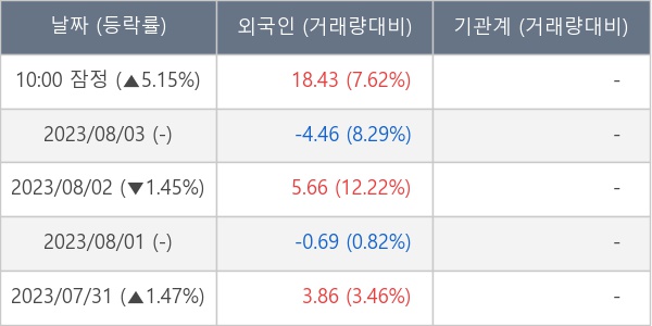 [표] 외국인ㆍ기관 순매매량 (단위 만주)