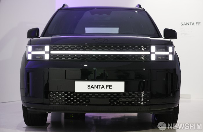 [파주=뉴스핌] 정일구 기자 = 지난 8일 경기 파주시 미메시스 아트 뮤지엄에서 열린 현대자동차 '디 올 뉴 싼타페' 미디어 프리뷰에서 신차가 공개되고 있다. 신형 산타페는 2018년 4세대 출시 이후 5년 만에 새롭게 탄생한 5세대 모델로 도심과 아웃도어 라이프를 모두 아우르는 현대차 대표 중형 SUV다. 2023.08.10 mironj19@newspim.com
