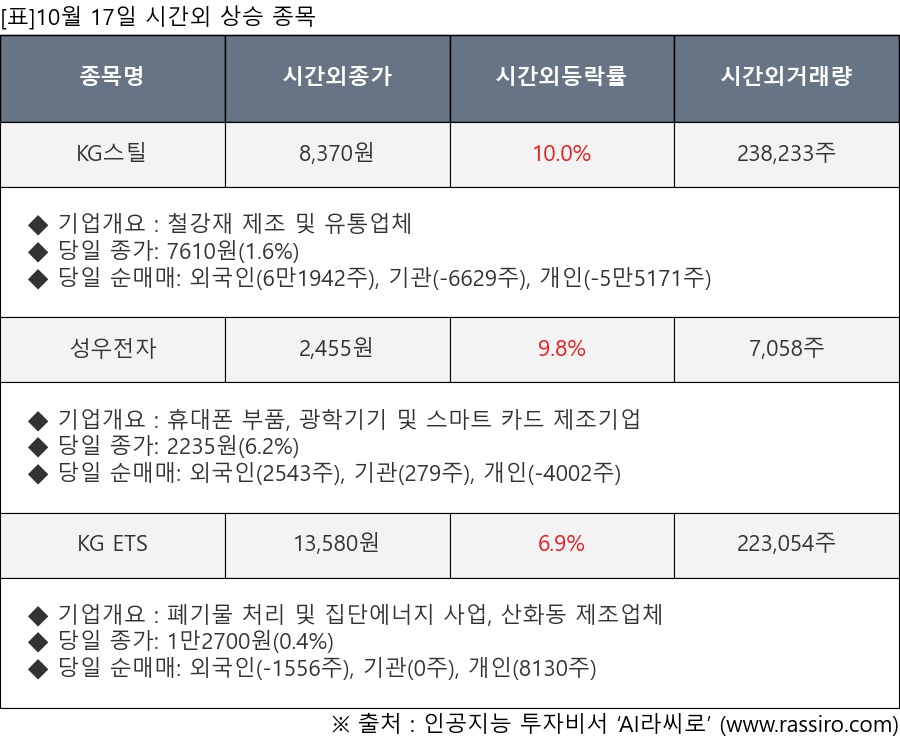 ※ 관련 종목: KG스틸, 성우전자, KG ETS