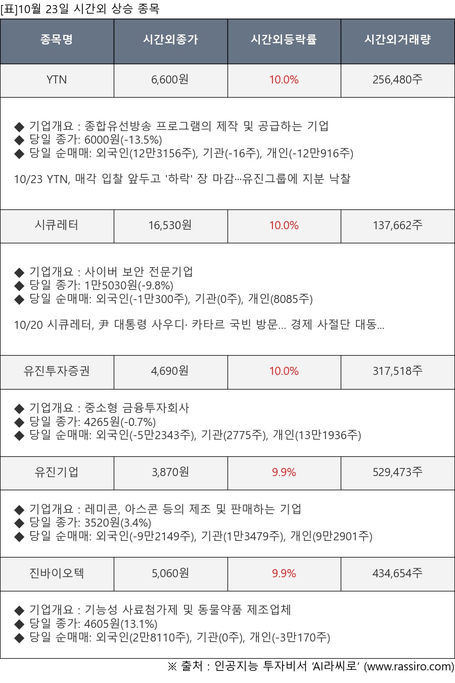 ※ 관련 종목: YTN, 시큐레터, 유진투자증권, 유진기업, 진바이오텍