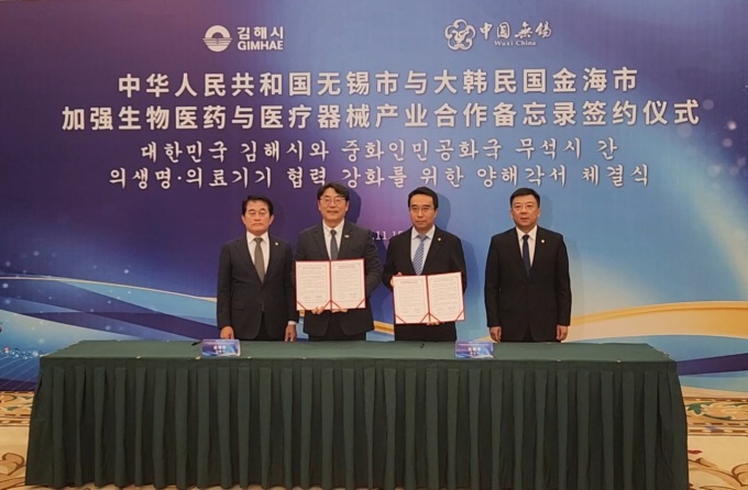 [김해=뉴스핌] 남경문 기자 = 경남 김해시 대표단은 15일 국제 자매도시 중국 무석시(無錫市)를 방문해 당서기를 접견하고 의생명·의료기기 협력을 위한 상호업무협약(MOU)을 체결했다고 16일 밝혔다.