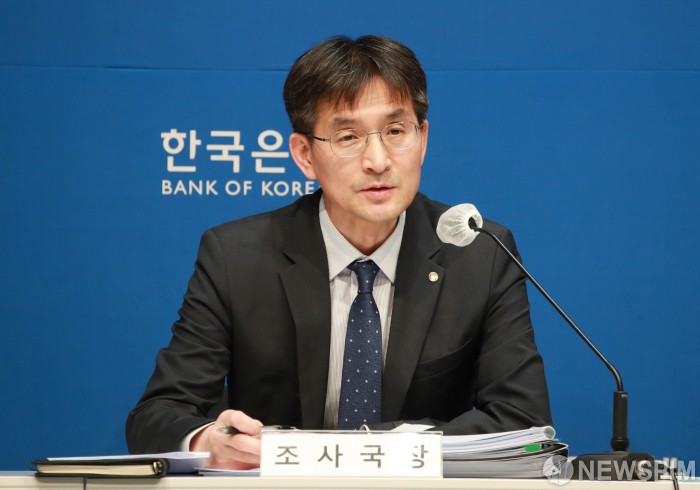 [서울=뉴스핌] 최창호 한국은행 조사국장이 30일 오후 서울 중구 한국은행에서 열린 2023년 11월 경제전망 설명회에서 발언하고 있다. [사진=한국은행] 2023.11.30 photo@newspim.com