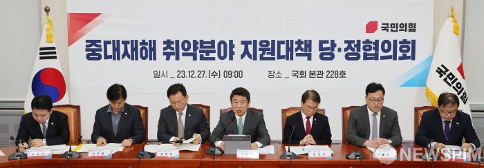 [서울=뉴스핌] 이형석 기자 = 유의동 국민의힘 정책위의장이 27일 오전 서울 여의도 국회에서 열린 중대재해 취약분야 지원대책 관련 당정협의에서 모두발언을 하고 있다. 2023.12.27 leehs@newspim.com