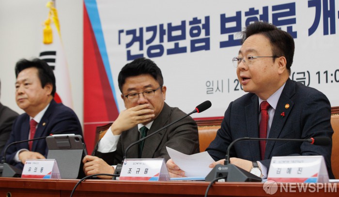 [서울=뉴스핌] 윤창빈 기자 = 조규홍 보건복지부 장관이 5일 오전 서울 여의도 국회에서 열린 건강보험 보험료 개선방안 당·정 협의회에서 인사말을 하고 있다. 2024.01.05 pangbin@newspim.com