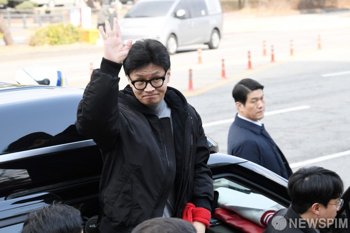 [수원=뉴스핌] 윤창빈 기자 = 한동훈 국민의힘 비상대책위원장이 7일 경기 수원 영통구청사거리에서 인사를 하고 있다. 2024.03.07 pangbin@newspim.com