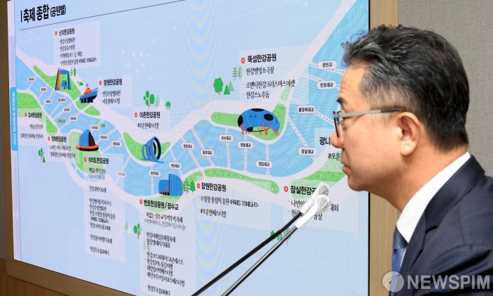 [서울=뉴스핌] 김학선 기자 = 주용태 서울시 미래한강본부장이 29일 서울시청 브리핑룸에서 2024년 한강 축제 종합계획을 발표하고 있다. 2024.04.29 yooksa@newspim.com