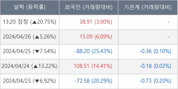 [표] 외국인ㆍ기관 순매매량 (단위 만주)